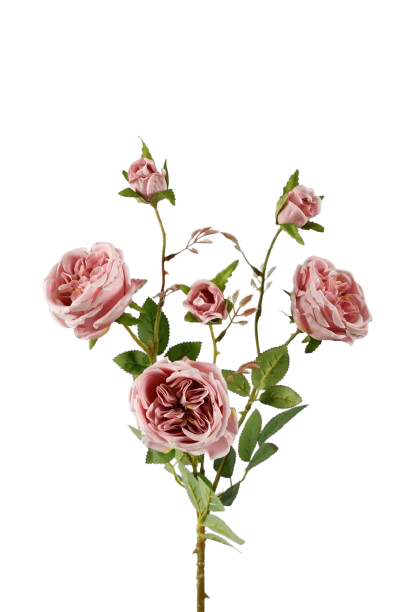 Een mooie volle tak met meerdere zacht lila rozen eraan. De tak is mooi verfijnd uitgewerkt door verschillende formaten van bloemen en knoppen