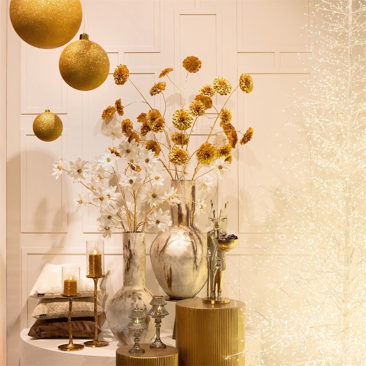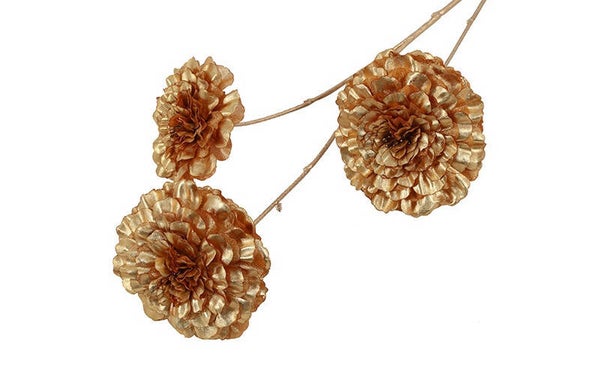 Een prachtige goudkleurige Zinnia die zeker weten sfeer brengt in je interieur! Je kunt hem mooi combineren in een boeket, maar ook alleen is deze bloem een echt eye catcher. Er zitten 3 bloemen aan een steel, die mooi natuurlijk verdeeld zijn.